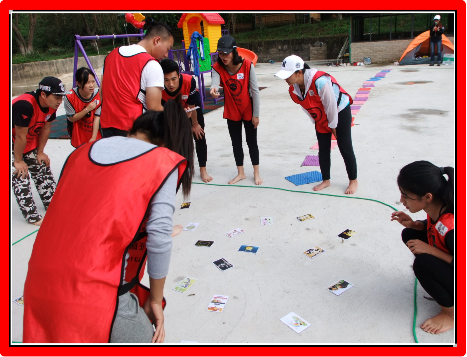 每位伙伴得到若干張卡牌,而每張卡牌有一定的聯系,學員要在在不相互看彼此卡的情況下,按照教練的要求將卡有順序的放置出來。