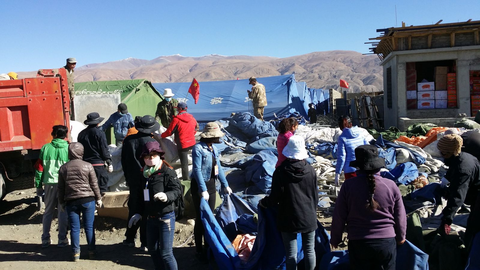 5月2日,救援隊在拉薩獲得援助在災區的越野車,購買了部分自用物資。隨后第一時間奔赴日喀則市,并在與當地政府和應急救災指揮中心工作人員協調后,獲得國家合法進入災區搶險救災的通行證與身份認可證。辦完相關手續之后救援隊進入核心災區定日縣,途中遇到許多軍用車和救災車輛,政府第一批救災物資已經基本到位,災民也基本得到妥善的安排。5月2日晚救援隊趕往拉孜縣,縣區情況良好,災民生活也得到妥善安排。隨后救援隊趕往海拔接近5000米的重災區,大部分獅友也已經客服了高原反應。