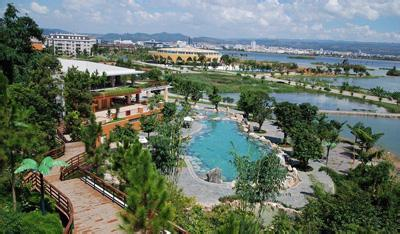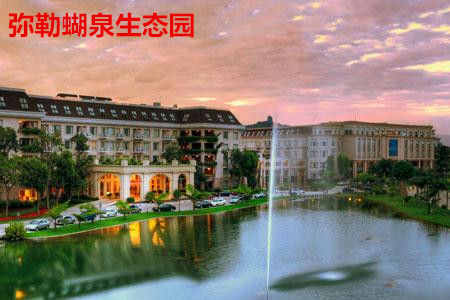 湖泉生態園是紅河投資公司經營的獨具特色的休閑娛樂場所,位于彌勒縣城西南一公里處。全園構思新穎,氣勢恢宏,占地三千余畝,湖面面積一千七百余畝,園內建有酒店、沙灘、茶樓、游泳館、溫泉浴場等休閑設施,并有豐富多彩的水上娛樂項目。這里群山環抱、綠樹成蔭,不僅可以領略大自然的無限風光,更可以體驗夕陽西下,漫步沙灘的浪漫感覺。在碧波蕩漾旁、柔軟的沙灘上,亦可用滿地的細沙“鑄造”您的想象和世界,給生活增添一份童趣。還可以乘坐游艇在湖中游覽,收獲那一份輕松自由、無拘無束的感覺。